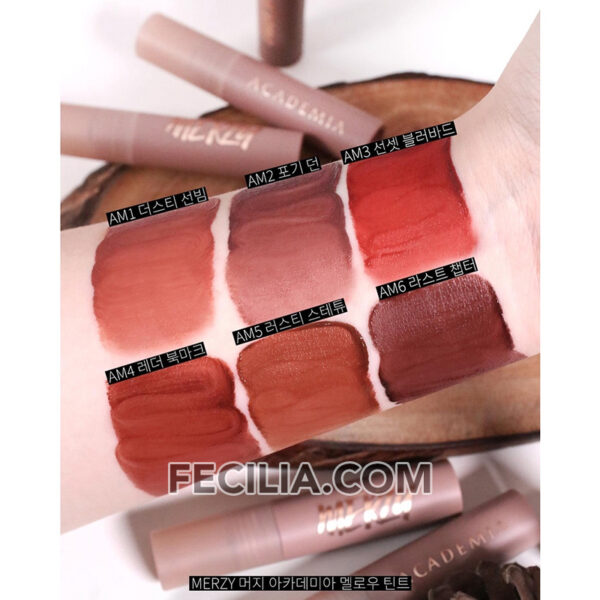 Bảng màu Son kem lì Merzy Academia Mellow Tint 4g chính hãng Cam san hô, Đỏ gạch, Nâu đất SON397
